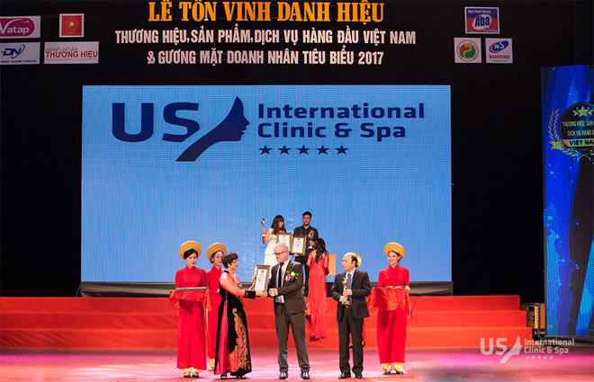 Trải qua gần 7 năm hoạt động nghiêm túc với tiêu chí mang chất lượng Thẩm mỹ Quốc tế đến với người Việt, vừa qua (12/10/2017) US International Clinic & Spa đã bất ngờ lọt TOP 3 thẩm mỹ viện có "Thương hiệu, Dịch vụ uy tín nhất Việt Nam về Giảm béo và Trẻ hóa da", do người tiêu dùng bình chọn và được Cục Sở hữu Trí tuệ bảo hộ độc quyền. Giải thưởng danh giá này đối với US Clinic & Spa còn mang nhiều giá trị tinh thần cao quý: đó chính là sự tín nhiệm và ghi nhận từ cộng đồng.